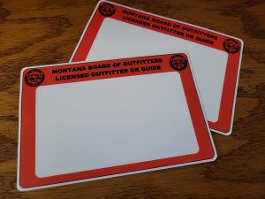 Last year the Montana Board of Outfitters changed the rule on Watercraft Identification for guides and outfitters. The Board, citing issues with material supplies and printing, removed themselves from providing Watercraft Identification stickers to licensed guides and outfitters. Instead, the Board now emails “to each licensee a pdf with the form of the Watercraft Identification tag to be used.”